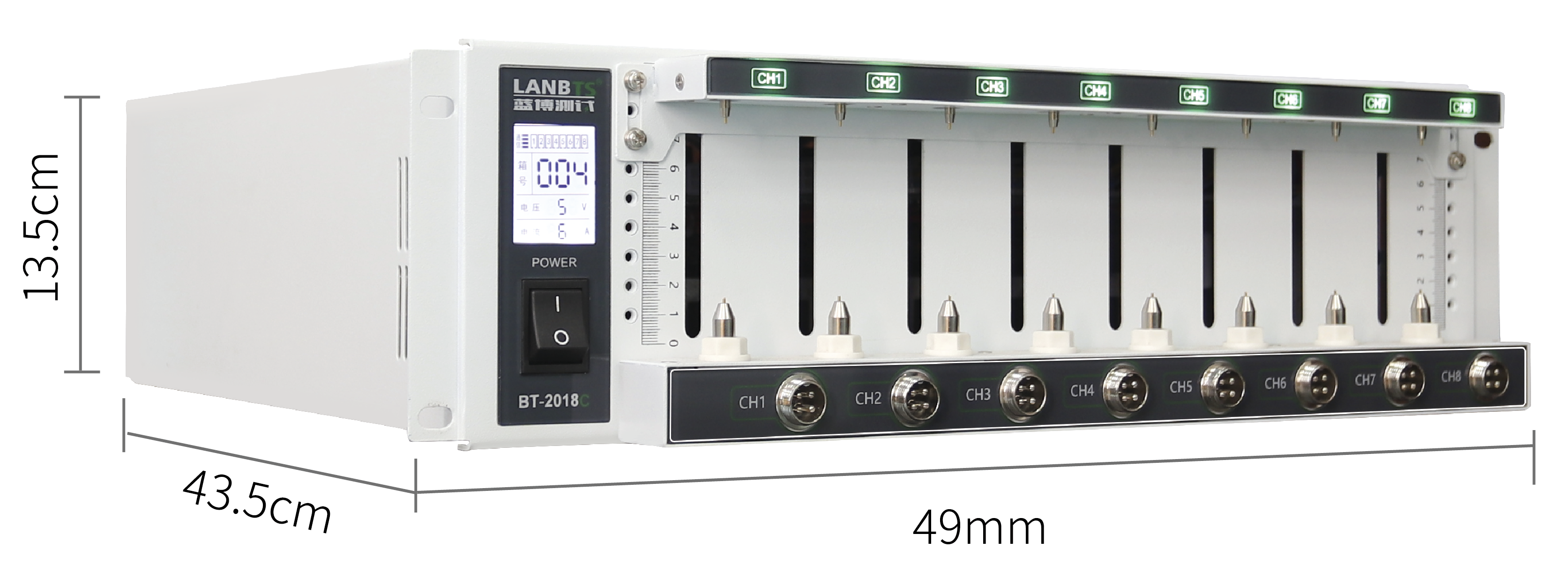 3寸LCD(箱號(hào)、電壓量程、電流量程、通信狀態(tài)、通道號(hào)等)亮度可調(diào)節(jié) |